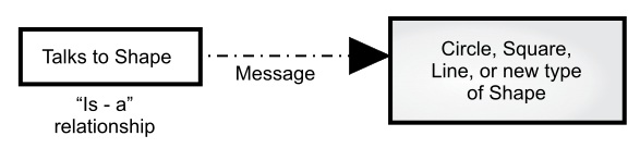 形状的例子中,有一个基类称为 Shape ,多个不同的派生类型分别是:Circle,Square,Triangle 等等。这个例子之所以好用,是因为我们可以直接说“圆(Circle)是一种形状(Shape)”,这很容易理解。继承图展示了它们之间的关系: